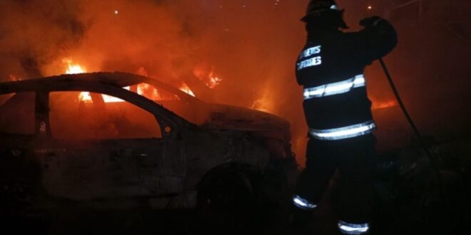 Personal de bomberos actuó sobre el fuego desatado en los autos sin que existiera riesgo de propagación de las llamas hacia otros bienes o inmuebles de la cuadra.