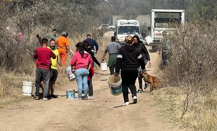 FOTO: Vecinos de San Nicolás, Malagueño, combaten un incendio a metros de las viviendas.