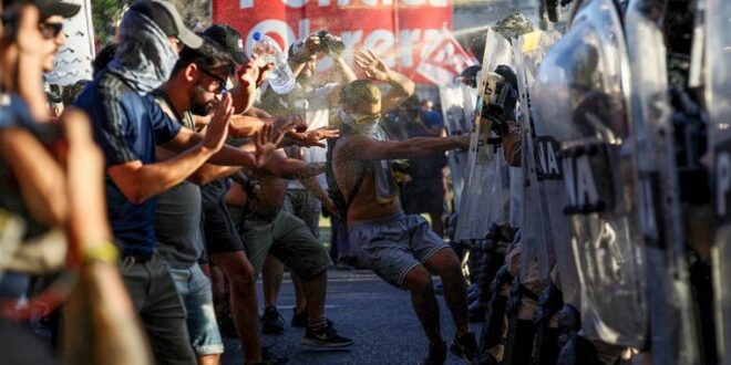 Más tarde, arribó al lugar una columna de efectivos de Prefectura Naval Argentina, equipados con escudos y cascos, lo que aumentó el nerviosismo entre las fuerzas del orden y los manifestantes.