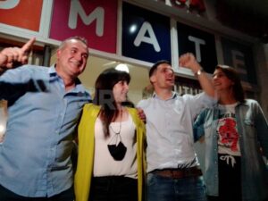 Mientras tanto, a dos cuadras en la Casa Justicialista, el festejo se enfocó en recuperar una banca más para el oficialismo, casi como si la abrumadora diferencia de votos no contara.