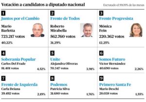 Por la lista ganadora, Juntos por el Cambio, ingresarán a la Cámara de Diputados Mario Barletta, Victoria Tejeda, Luciano Laspina, Germana Figueroa Casas y Gabriel Chumpitaz. Por el Frente de Todos: Roberto Mirabella, Magalí Mastaler y Eduardo Toniolli. Por el FAP: Mónica Fein.