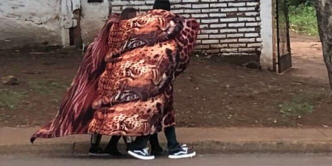 En Misiones, precisamente en la localidad de Oberá, la imagen de tres personas que iban caminando por la calle y decidieron resguardarse del frío con un “acolchado de tigre” generó un sinfín de comentarios.