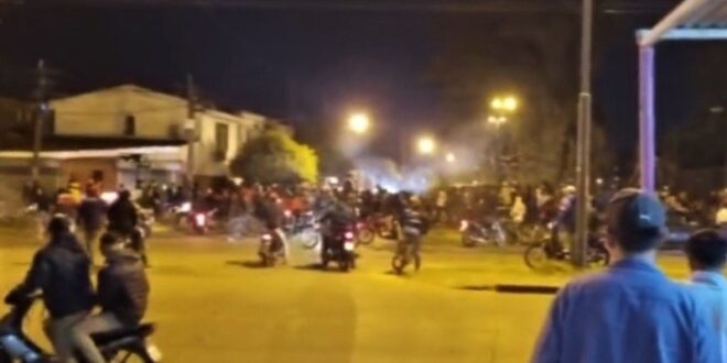 Las imágenes dan cuenta de decenas de motos dejando el lugar y cientos de jóvenes corriendo en distintas direcciones, mientras avanzaba un grupo de efectivos de la policía hacia ellos.