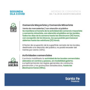 Las mismas regirán desde las 0 horas del sábado 7 y hasta el 20 de agosto de 2021 inclusive, en todo el territorio santafesino. Hay cambios en el ejercicio de profesiones liberales y el funcionamiento de centros de día y geriátricos.