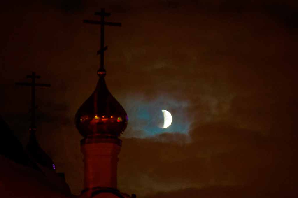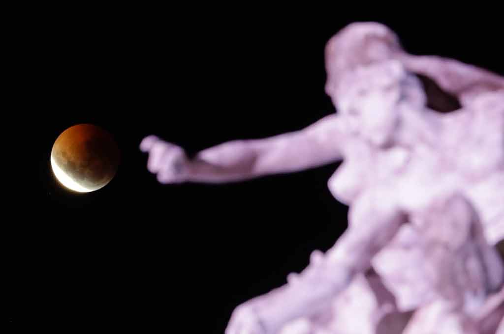 >>> A las 23.37 del domingo, con el inicio del camino hacia la «Superluna de sangre». Poco a poco, la luna llena se fue oscureciendo y, finalmente, mutó de color.