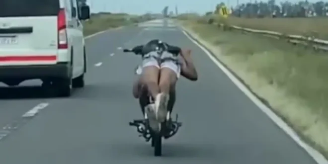 El asfalto, la recta y una imagen difícil de creer: un hombre manejando acostado sobre su moto, a alta velocidad, en plena ruta. La escena quedó registrada por un automovilista y se viralizó en redes, donde la maniobra fue leída como una imprudencia extrema.