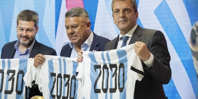 Massa, aseguró que «el Mundial 2030 arrancará en Argentina gobierne quien gobierne» y elogió la gestión para poder celebrar el centenario de la primera edición en Sudamérica.