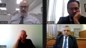 El presidente Alberto Fernández decidió declarar de forma presencial (captura)“Doctor (en referencia a Luciani) me da la impresión de que usted no me escuchó bien antes”. El Presidente aclaró en varias oportunidades que no recordaba cada una de las obras que incluían los proyectos de Presupuesto.