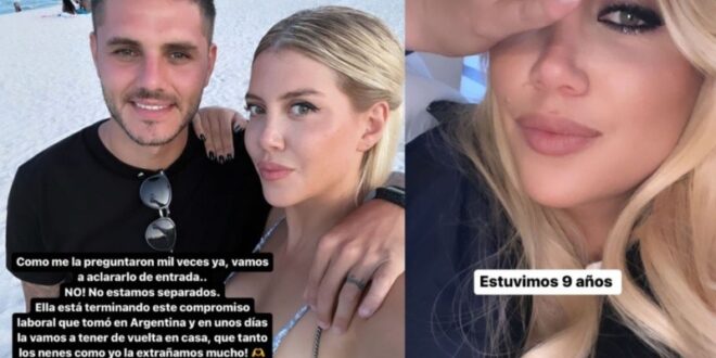 “No estamos separados. Ella está terminando este compromiso laboral que tomó en la Argentina y en unos días la vamos a tener de vuelta en casa, que tanto los nenes como yo la extrañamos mucho”, escribió Icardi junto a un emoji de un corazón.