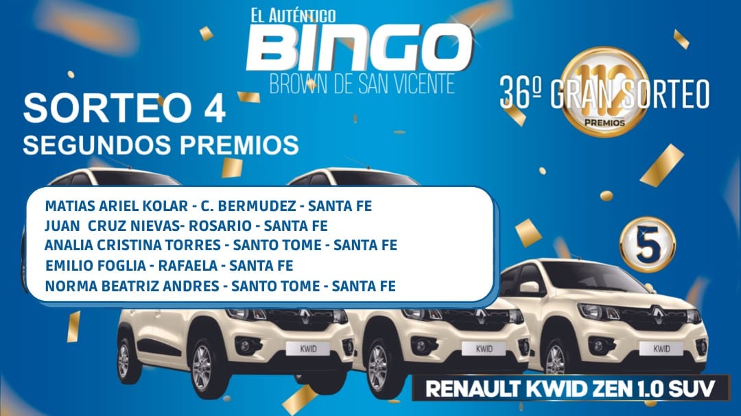 GANADORES: Emilio Foglia (Rafaela, Santa Fe) Matias Kolar (Capitán Bermudez, Santa Fe), Norma Andrés (Santo Tomé), Juan Cruz Nievas (Rosario, Santa Fe), Analía Torres (Santo Tomé, Santa Fe)