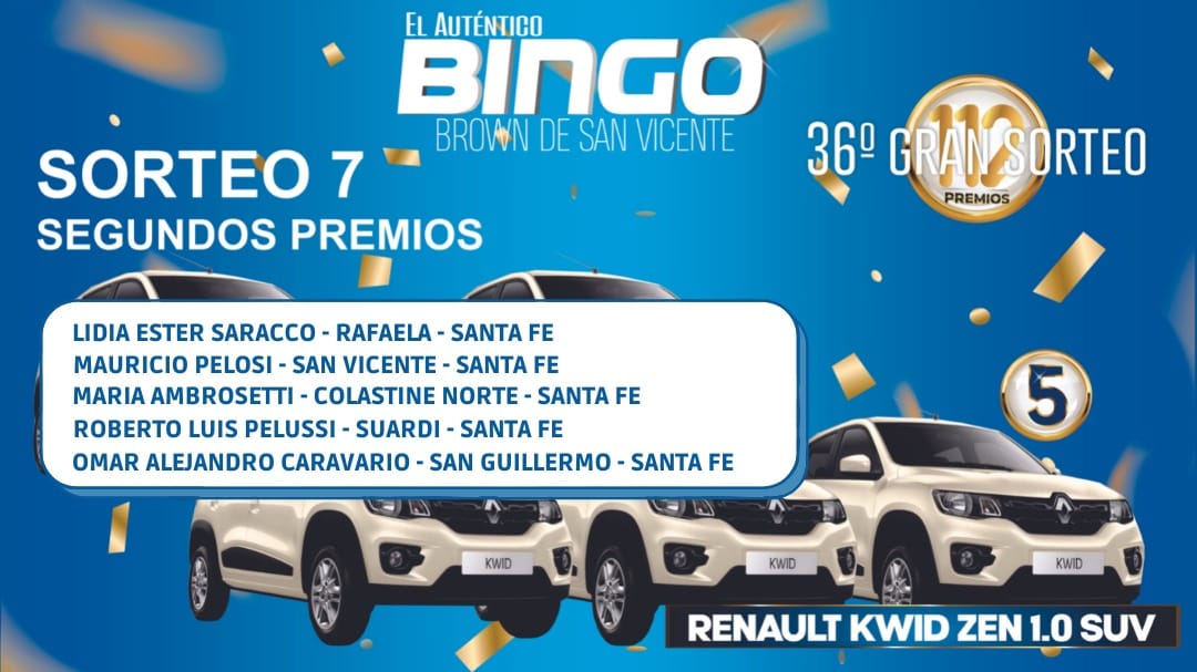 GANADORES: Claudio Cisneros (Gálvez, Santa Fe), María Sandobal (Totoras), Hernán Moroni (Tortugas, Santa Fe), Ángel Hischier (San Carlos Sud, Santa Fe), Darío Eberhard (San Jerónimo Norte, Santa Fe)