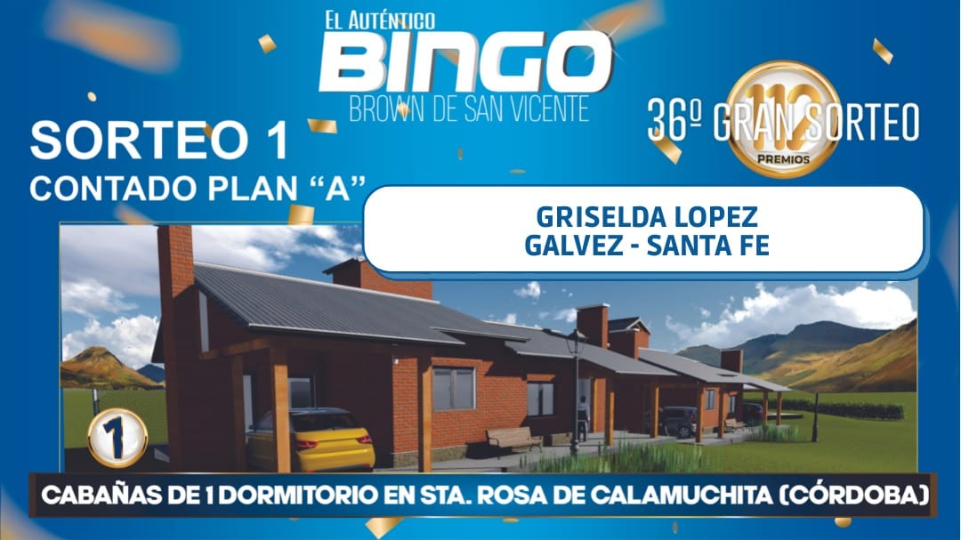 PREMIO: 1 CABAÑA EN SANTA ROSA DE CALAMUCHITA. GANADORA: Griselda López (Gálvez, Santa Fe