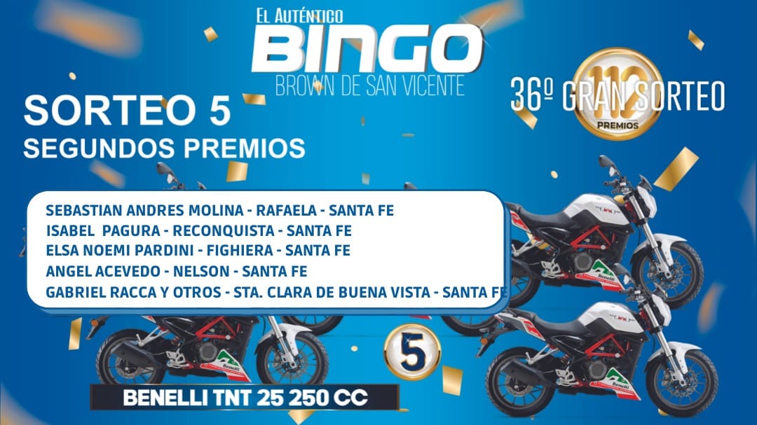 SEGUNDOS PREMIOS: 5 MOTOS BENELLI TNT