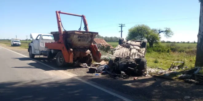Según informaron fuentes policiales, el hecho involucró el impacto de un automóvil contra un camión que remolcaba un volquete. Tras la colisión, el automóvil volcó y quedó destruido.