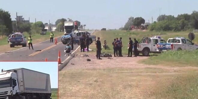 El funcionario explicó que “el camión circulaba de sur a norte en un sector con doble línea amarilla y la moto de 125 cc lo hacía en sentido contrario. Por razones a establecer, impactaron de forma frontal”.