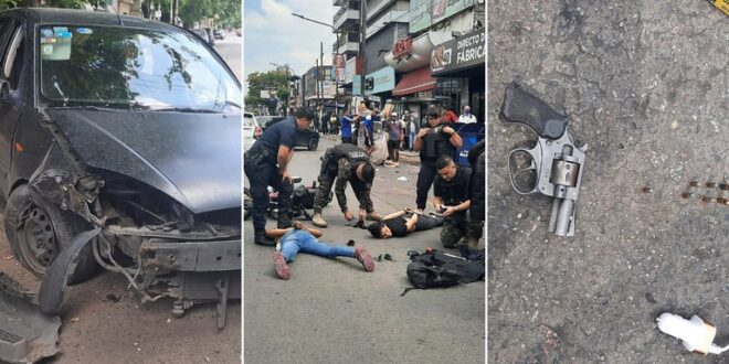 Para huir, la pareja de ladrones robó un Ford Focus negro a un remisero pero chocaron el auto. Entonces, ingresó a un supermercado para simular que realizaban compras y cambiarse la ropa que vestían para no ser reconocidos. No fueron muy lejos: Suárez y la chica fueron detenidos. Les secuestraron un revolver, la posible arma homicida.