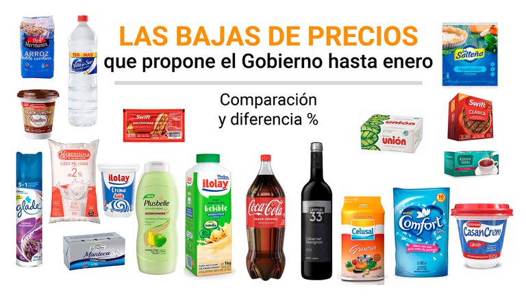 De los 20 ítems analizados por este medio, sólo dos reflejan bajas menores al 10%. Uno es el paquete de 1 kilo de sal gruesa marca Celusal, que muestra un recorte en el precio actual de góndola del 4%, y otro es la botella de 1,65 litros de agua sin gas Villa del Sur, donde el Gobierno propuso una reducción del 2% versus su valor vigente. A su vez, productos como la Coca-Cola regular de 2,25 litros debería bajar 17% su precio, mientras que la Coca-Cola light de 1,5 litro, 15%. Lo mismo que el queso crema Casancrem de 270 gramos, que hoy se comercializa a $254,60 y deberá bajar a $222,37. Y los ejemplos continúan.
