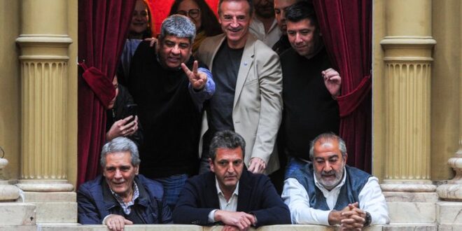 En los palcos, estuvo Massa junto a los líderes de la CGT, Héctor Daer, Pablo Moyano y Carlos Acuña, con quienes se abrazó tras la victoria en el recinto.