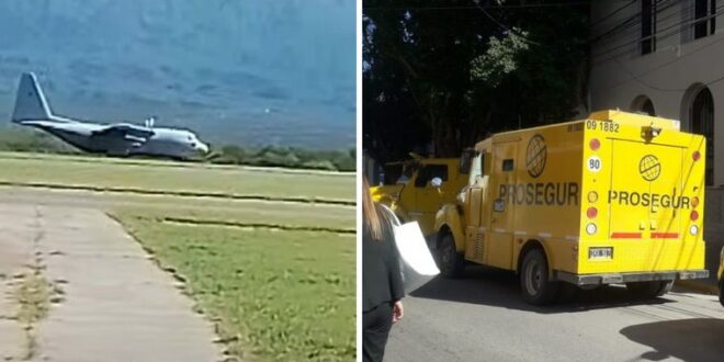 Según se supo, horas antes un avión Hércules arribó al aeropuerto local con lo que habrían sido 360 «sacas» de dinero, según confiaron fuentes bancarias.