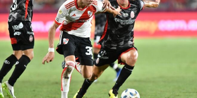 Lo mejor de River se produjo en los pies del chiquilín Mastantuono, quien debutó el domingo pasado en el empate ante Argentinos en el Monumental. Con 16 años, 5 meses y 17 días, el número «30» disputó su primer partido de titular y desplegó su mejor versión cuando lo hizo de enganche.
