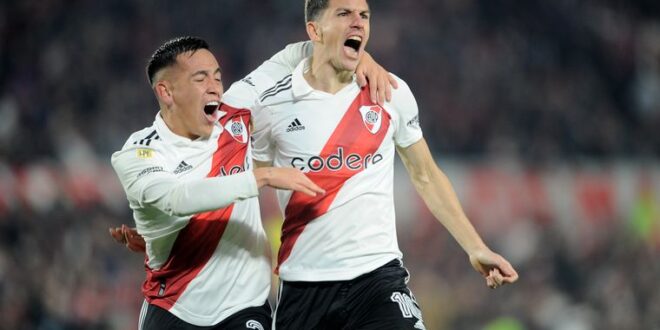 Sobre el final, con fortuna en una jugada entre el «Diablito» Claudio Echeverri y Lucas Beltrán, el local puso cifras definitivas para el triunfo y no cede en la pelea por el título a falta de seis fechas para culminar el torneo.