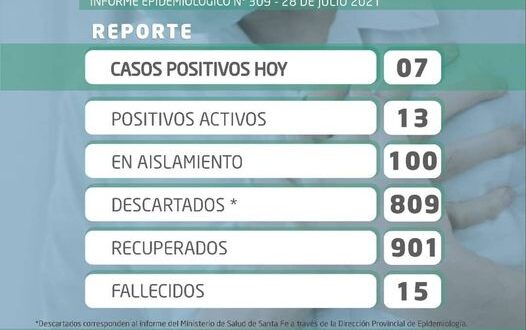 Informamos 7 nuevos casos positivos, los cuales hoy suman 13 positivos activos en total, debido a que 1 persona se ha recuperado y recibió el alta.