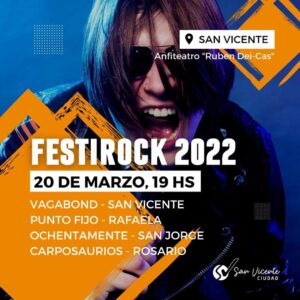 Por su parte, el domingo 20 de marzo llega una nueva edición del «Festi Rock» en San Vicente organizado por la Subsecretaría de Cultura.