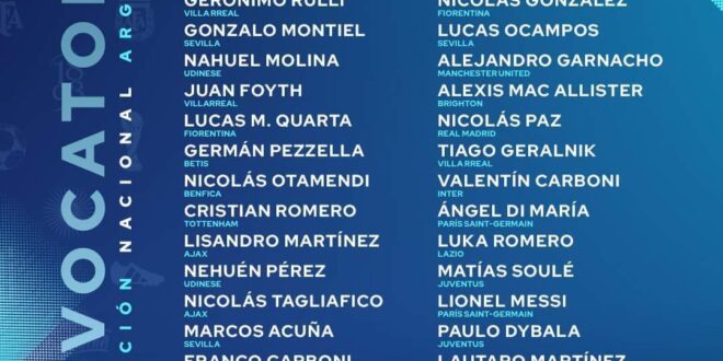 El entrenador del seleccionado argentino, Lionel Scaloni, hizo pública este domingo, a través de la AFA, una prelista de 44 convocados para la última doble fecha de Eliminatorias Sudamericanas.