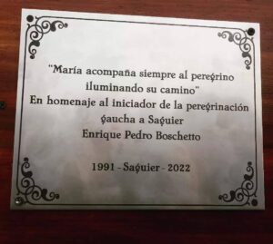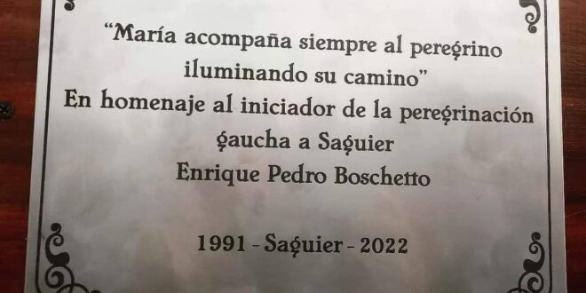 El evento que convocó a 40 agrupaciones de la región, con más de 400 caballos que desfilaron por la Avenida principal de la mencionada localidad además se rindió homenaje a Enrique Boschetto donde su familia participó del merecido homenaje donde se descubrió una placa en el santuario donde dice textualmente » Maríá acompaña siempre al peregrino iluminando su camino» En homenaje al iniciador de la peregrinación gaucha de Saguier ENRIQUE PEDRO BOSCHETTO 1991-SAGUIER-2022