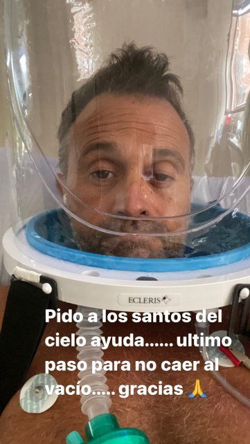 Lapegüe, un “heavy user” de las redes sociales, publicó una “storie” en la que se lo ve con un casco que le facilita la respiración y una expresión de cansancio y preocupación. Sobre la imagen posteó esta frase: “Pido a los santos del cielo ayuda. Último paso para no caer al vacío. Gracias”, escribió.