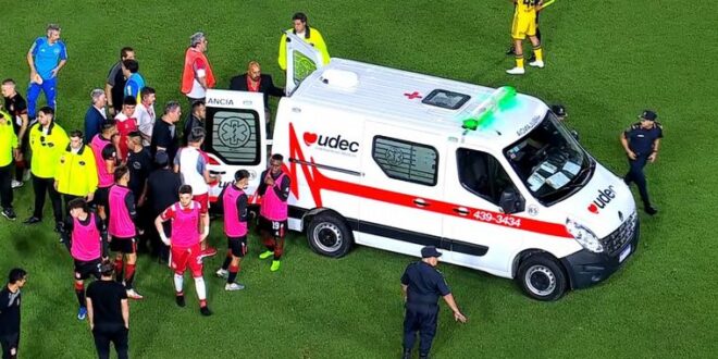 El jugador chileno, que sufrió convulsiones, fue llevado al Instituto Médico Platense, donde se encontraba «bien, consciente y con familiares», se informó en el estadio.