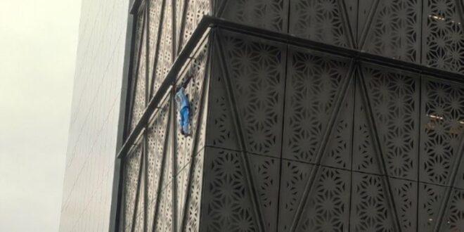 Momentos de tensión se vivieron este mediodía en la zona de Puerto Madero, donde un hombre de nacionalidad polaca se trepó por su cuenta a un edificio de oficinas y escaló sin protección hasta alcanzar el piso 15. Lo detuvieron poco antes de que llegara a la cima.