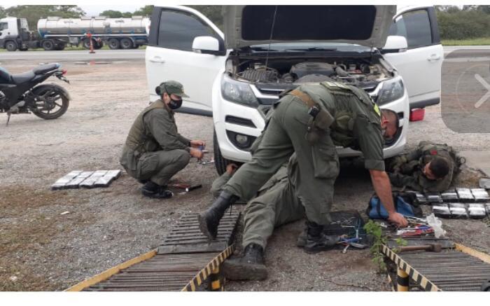 Encontraron “paquetes” en el techo (entre la lona y la chapa), en la zona de la rueda y en el motor. En total, 24 ladrillos, que pesaban más de 25 kilos. El narcotest dio positivo para cocaína.