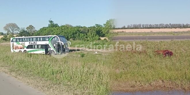 Según lo que se pudo conocer, un colectivo de la empresa Cachi Turismo viajaba completo con 52 pasajeros por la RN34 cuando impactó de lleno contra dos caballos.