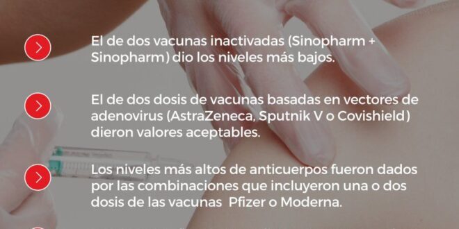 Quienes tienen dos dosis de vacunas inactivas, es decir, Sinopharm, tienen los niveles más bajos de anticuerpos. Las personas que recibieron vacunas basadas en vectores de adenovirus como AstraZeneca, Sputnik V o Covishield, tienen valores de anticuerpos aceptables más altos que los de las vacunas inactivadas. El informe destaca que los desempeños de Sputnik V y AstraZeneca fueron muy similares.