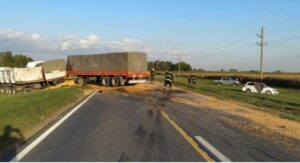 Según testigos, el coche del gendarme intentaba pasar a dos camiones por el carril izquierdo pero terminó impactando con otro que circulaba en el sentido contrario.