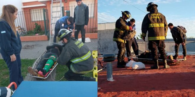 Los rescatistas constataron que el hombre no podía descender por sus propios medios, por lo que le brindaron asistencia prehospitalaria y, utilizando una escalera y técnicas de rescate, lograron bajarlo de manera segura.