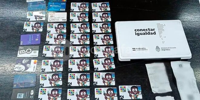En concreto, las autoridades secuestraron una mochila, una netbook, dos celulares, 21 tarjetas para máquinas de video juego y de débito, una lectora de tarjetas y numerosos tickets correspondientes a operaciones bancarias.