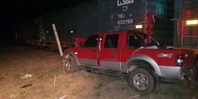 Una camioneta chocó contra un tren carguero en la localidad de Arrufó. El siniestro se registró este martes a las 3.30 de la madrugada. Por razones que se tratan de establecer la camioneta, que circulaba sobre la ruta provincial N°39 impactó contra la formación.