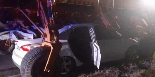Al parecer, el vehículo colisionó desde atrás la maquinaria agrícola quedando debajo de la misma.