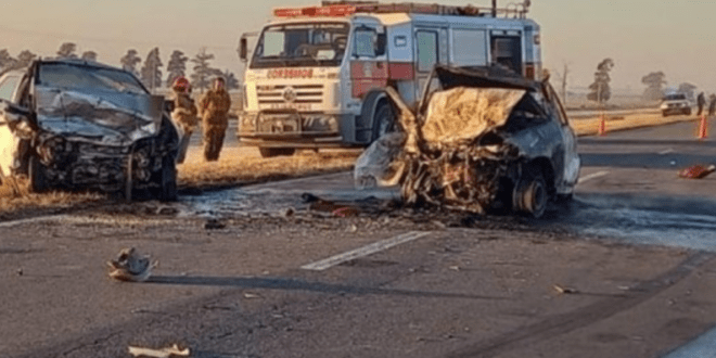 Este domingo, cuando faltaban algunos minutos para llegar a las 8, se produjo un violento choque en el kilómetro 277 de la ruta nacional 34 a la altura de la ciudad de Rafaela en el departamento Castellanos. Se trató de un choque frontal que protagonizaron dos automóviles y que luego del impacto se incendiaron.