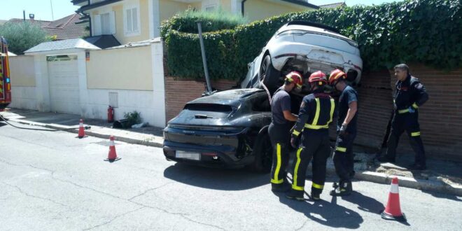 Cómo fue el accidente que dejó a dos lujosos Porsche apilados e incrustrados en una pared en Madrid