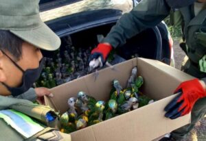 Al comenzar con el registro del rodado, los gendarmes detectaron en el baúl la presencia de 100 loros habladores, presumiblemente para su comercialización. Las aves eran trasladadas en malas condiciones y bajo altas temperaturas.