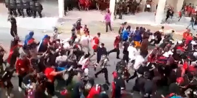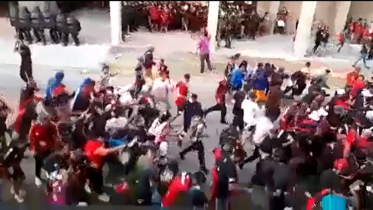 Esta tarde en el acceso sur de la cancha de Colón en el estadio Centenario fue el epicentro de hechos de violencia que habrían sido protagonizados por el sector de la barra brava La Negrada y a la que conduce el Chucky Ríos. La refriega tuvo lugar cuando intentaron ingresar los barras sin entradas, los policías se interpusieron, y se desató la violencia cuando les dispararon desde el Fonavi.