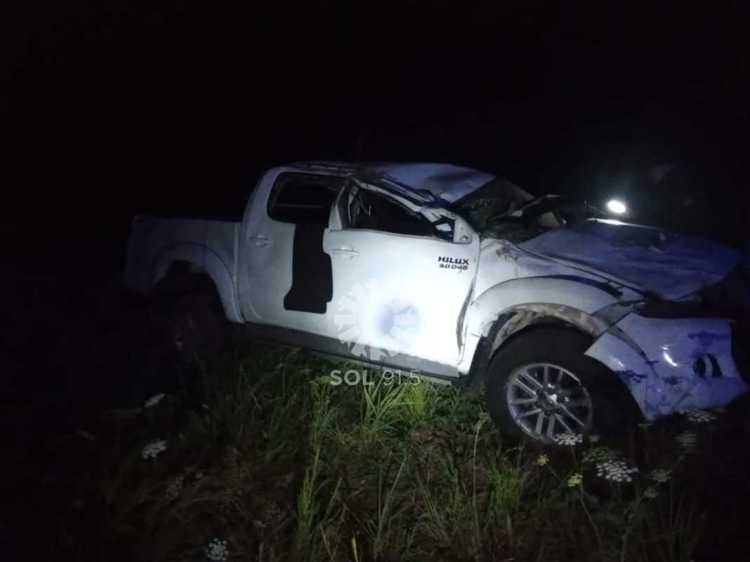 Alrededor de las 3.40 de la madrugada ingresaron varios llamados telefónicos de automovilistas que transitaban a la altura del kilómetro 23 de la ruta provincial N° 2, en jurisdicción de la localidad de Arroyo Aguiar, denunciaron la existencia de una camioneta blanca que estaba en un campo al costado del camino y con inequívocos abollones de un vuelco.