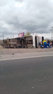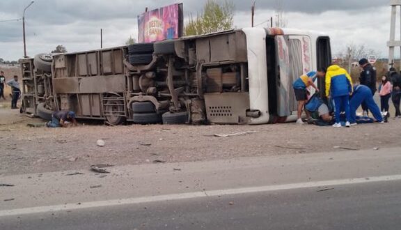 Ocurrió sobre la Ruta 7, a la altura del autódromo Jorge Ángel Pena, a casi 45 kilómetros de Mendoza capital. El vuelco se habría generado porque se reventó un neumático del micro, despistó y quedó en la mano contraria.